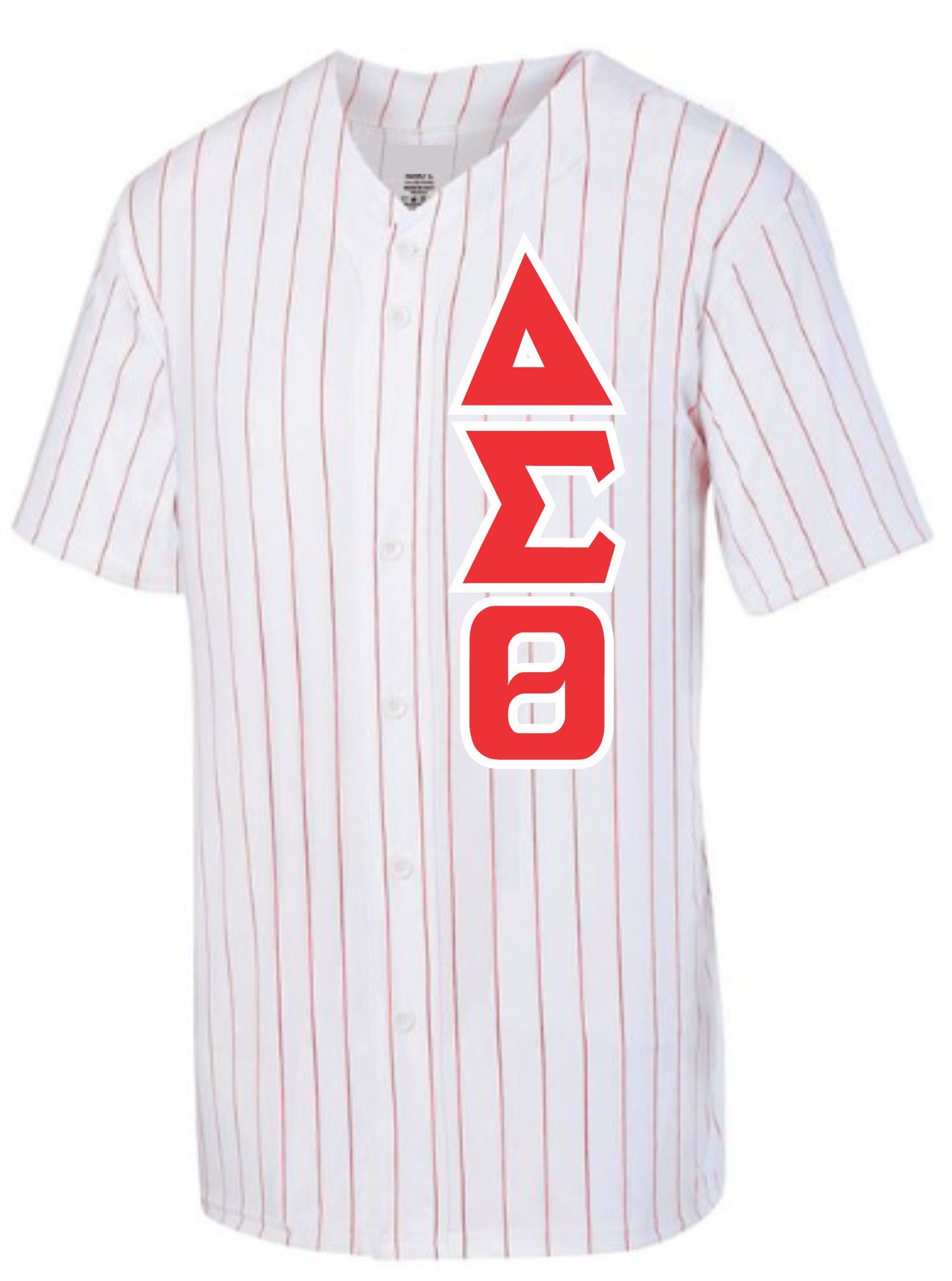 Delta Pinstripe Baseball Jersey - S / White/Red is made or restocked when you order.