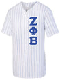 Zeta Pinstripe Baseball Jersey - S / White/Royal is made or restocked when you order.