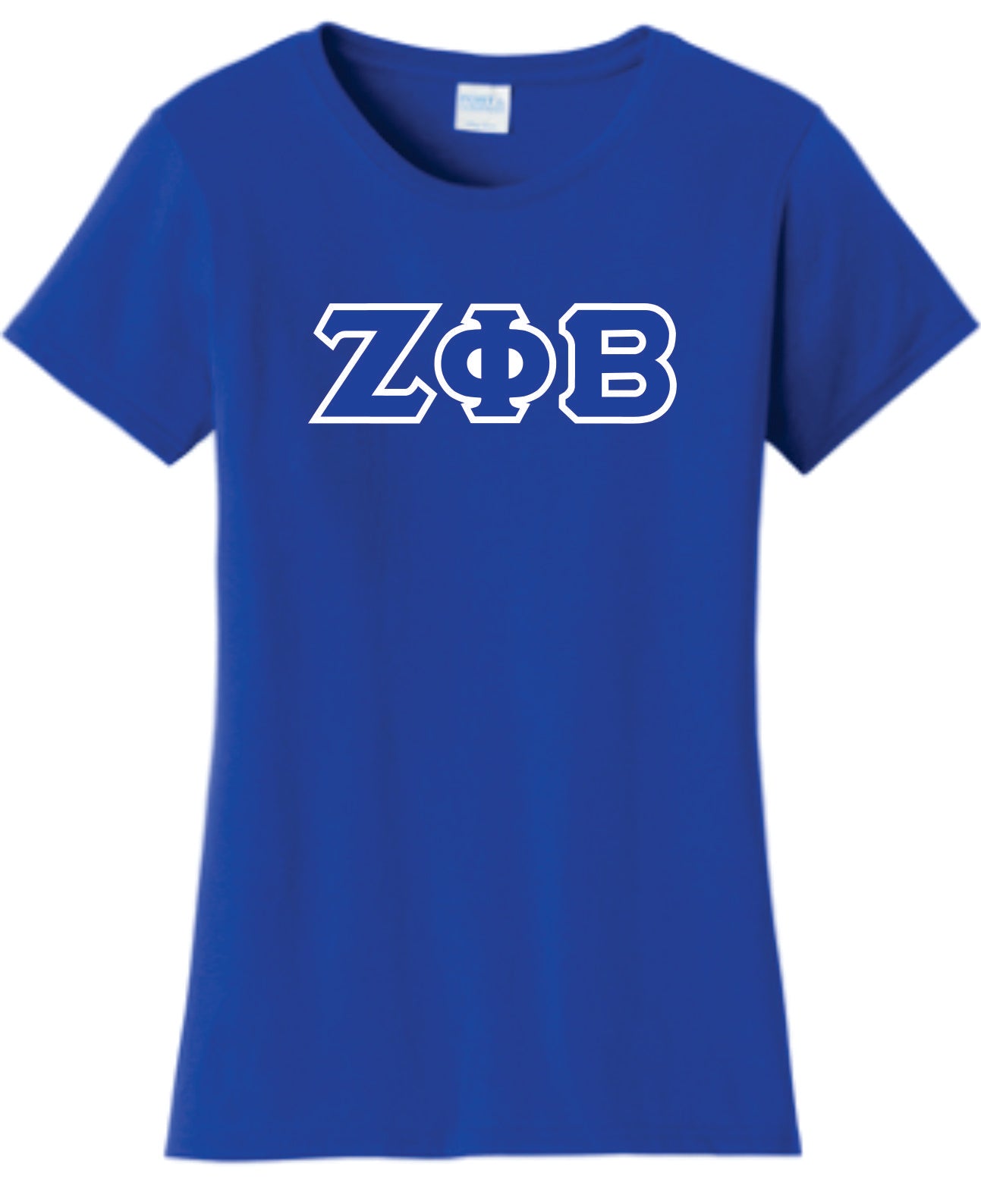 The 3 Greek or organizational letters take center stage in this classic style. The 3 inch, double applique letters are sewn into, not pressed onto, our high quality tees. This one is done on a ladies fitted tee, 100% pre-shrunk cotton, 4.5 ounce. The styling is slightly tapered to the body. Long sleeve tees feature an open cuff. This classic never goes out of style and is a must have for every new initiate.