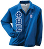 These traditional crossing line jackets are a must have for the new initiate. As with all of our crossing line jackets, the letters are sewn on applique and the organizational emblem is fully embroidered into the garment. This garment is sized for adults (men) and is constructed of 100% nylon taffeta and lined with 100% polyester brushed tricot. It features a snap front, raglan sleeves, byron collar, elastic cuffs, open bottom with NO drawcord and reinforced slash front pockets.