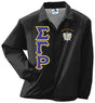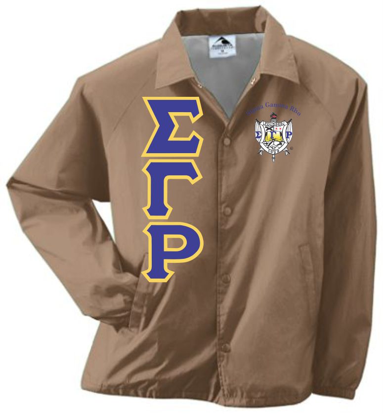 These traditional crossing line jackets are a must have for the new initiate. As with all of our crossing line jackets, the letters are sewn on applique and the organizational emblem is fully embroidered into the garment. This garment is sized for adults (men) and is constructed of 100% nylon taffeta and lined with 100% polyester brushed tricot. It features a snap front, raglan sleeves, byron collar, elastic cuffs, open bottom with NO drawcord and reinforced slash front pockets.