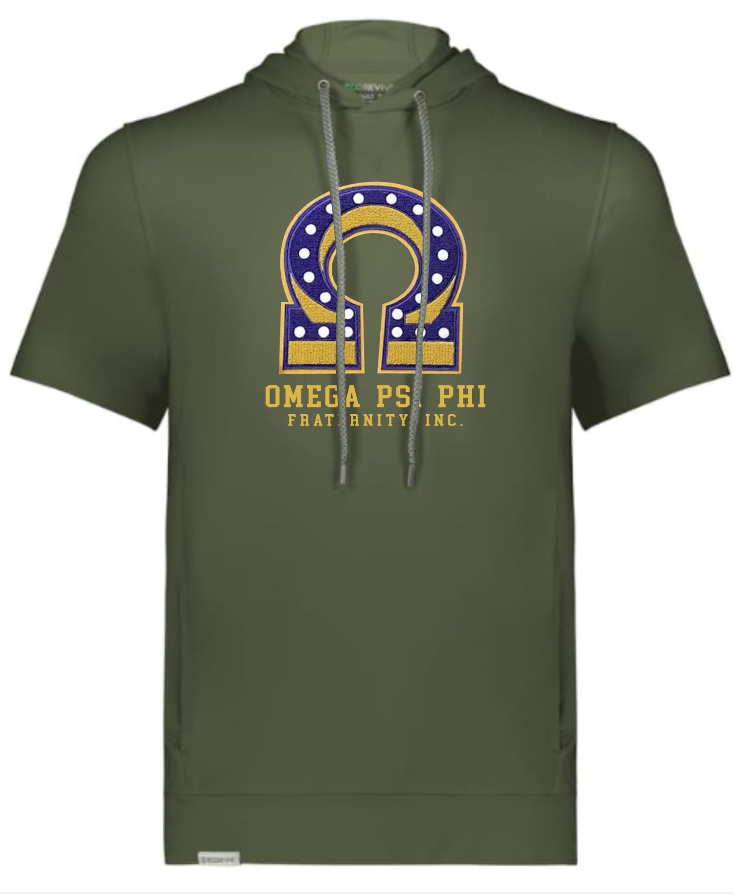 Omega Printed Symbol Short Sleeve Hoodie - S / Olive is made or restocked when you order.
