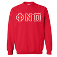 This is a new take on a classic crewneck. The 3 Greek letters are sewn into (not pressed onto) an adult (men's) sized crewneck. The sweatshirt is constructed from an 8 ounce 50/50 cotton polyester blend to resist shrinkage and pilling. It features set-in sleeves with two needle neck, armholes, shoulders, cuffs and waistband. It's the perfect addition to any para collection!
