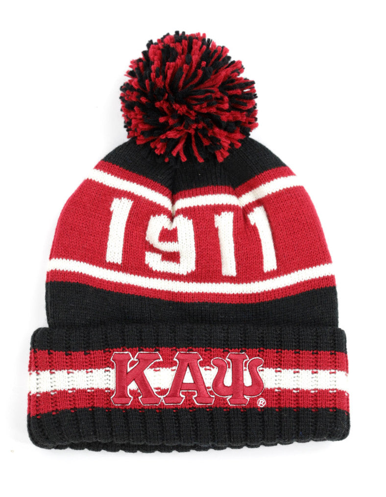 Ward off the winter winds fashionably in this 100% acrylic knit beanie. Topped with a colorful pom, it features a classic design combining solids and stripes. The front cuff bears the embroidered Greek letters and the founding date is knitted into the crown on the front. The back of the toboggan is decorated with sorority or fraternity lettering as well. Pair this with the matching scarf and winter is a wrap!