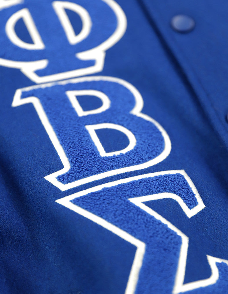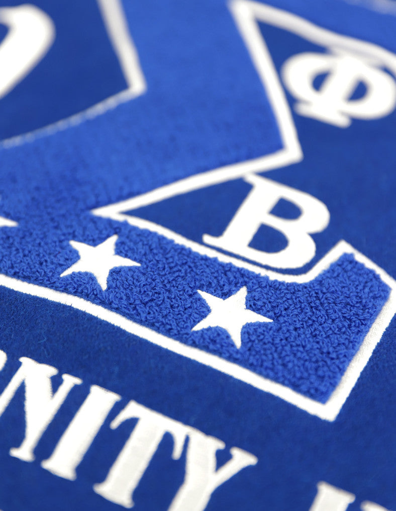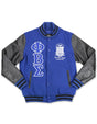 Hold everything... this jacket has it all! Available for Greek organizations and Masons, the wool/viscose body is heavy enough for those winter breezes. The PU/viscose sleeves have the look of leather but are lighter and easy to care for. The jacket is fully lined inside and the outside... well, that's fully decorated. A combination of chenille lettering and expert embroidery make this one a standout. The ribbed collar and cuffs add comfort and flair. This jacket is dry clean only. You just can't lose with this stunning jacket!