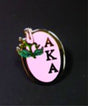 This pin features your greek letters, organizational colors, and flower. This is quite simple and is great to add some bling to any outfit.