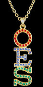 The ultimate in today's "bling" jewelry features your Greek or OES letters formed into a necklace pendant drop. The pendant measures approximately 1.5" tall and includes a plated chain. Whether you choose the silvertone or goldtone setting, it will add a little sparkle to your next outfit!