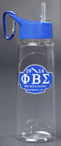 This 24 ounce capacity water bottle allows you to stay hydrated still showing your organizational spirit. These rugged bottles are made from 100% BPA-free Eastman Tritan. A bold emblem is printed onto the clear bottle which allows you to easily see when it is time for a refill. The colorful top features both a carabiner hook, a finger hold and a flip up drinking spout. This one really has it all!