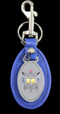 This leather fob keychain is classically elegant. Your Greek fraternity, sorority or fraternal organizational emblem is etched and filled in full color into an oval medallion and then mounted on top of an oval leather backing. It comes with your standard O keyring plus an additional metal swivel clasp to easily attach to other items. Try this one for a winning look!
