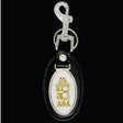 This leather fob keychain is classically elegant. Your Greek fraternity, sorority or fraternal organizational emblem is etched and filled in full color into an oval medallion and then mounted on top of an oval leather backing. It comes with your standard O keyring plus an additional metal swivel clasp to easily attach to other items. Try this one for a winning look!