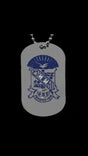 Step up to the ultimate in recognition dog tags. Our dog tags have full color enamel details and are finished on our jewelry quality tags with silver or gold plating. Full military style stainless chains keep your tag in clear view. Our double sided tags have full color organization crests on one side and letters on the other.