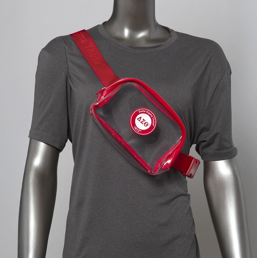 Gameday just got even better with this clear vinyl bag. A circular sewn on emblem boasts your organizational information. The organizational name is woven into the comfortably wide strap. It is designed to be worn either as a fanny pack or a crossbody. Either way, this sturdy zippered pack will allow easy access to your personal items while they are safely tucked close to the body keeping your hands free. Get yours today!
