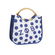 Polka dots are fun, fun, fun and so is this tote bag! It is constructed of natural jute with a wooden handle. This bag is great for a shopping adventure, riding around the town, or going to an organizational event.