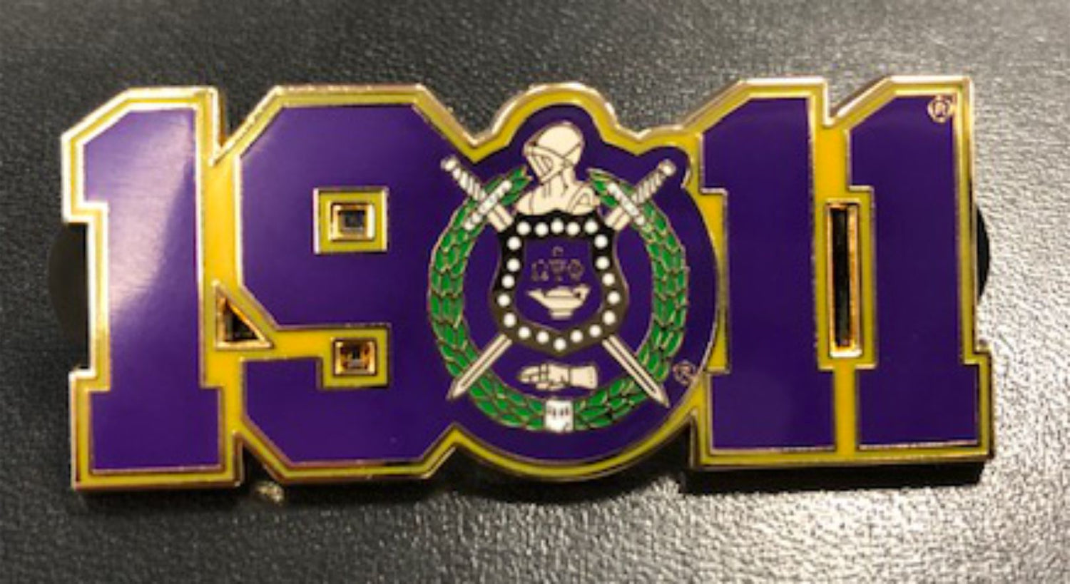 This lapel pin is perfect for any occasion. It has your year and crest in the middle and a gold tone finish with your organizational colors shining boldy throug. It is a two prong lapel pin that has a rubber backing. and measures 2" W x .72" H.