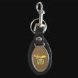 This leather fob keychain is classically elegant. Your Greek fraternity, sorority or fraternal organizational emblem is etched and filled in full color into an oval medallion and then mounted on top of an oval leather backing. It comes with your standard O keyring plus an additional metal swivel clasp to easily attach to other items. Try this one for a winning look!